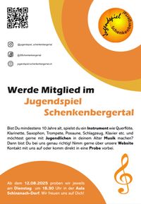 Bist du mindestens 10 Jahre alt, spielst du ein Instrument wie Querflöte, Klarinette, Saxophon, Trompete, Posaune, Schlagzeug, Klavier etc. und möchtest gerne mit Jugendlichen in deinem Alter Musik machen? Dann bist du beim Jugendspiel Schenkenbergertal genau richtig. Nimm gerne über die Website Kontakt mit dem Jugendspiel auf oder komm direkt in eine Probe vorbei.